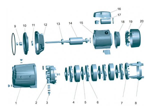 - Corpo da bomba em ferro fundido e apoio sob tratamento especial anti-ferrugem.